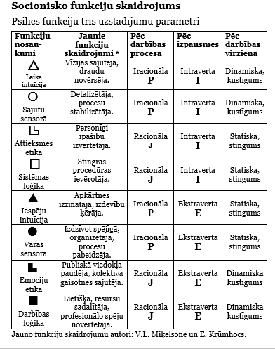 Pēc lasītāju un interesentu vēlmes biedrība “Socionika” Rīgas socionikas skola (V.L Miķelsone un E. Krumholts) veica visu psihes funkciju nozīmes dziļāku un saprotamāku skaidrojumu, kurš precīzāk izskaidro funkcijas jēgu.