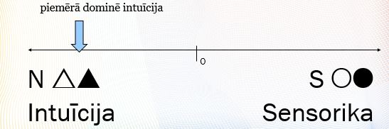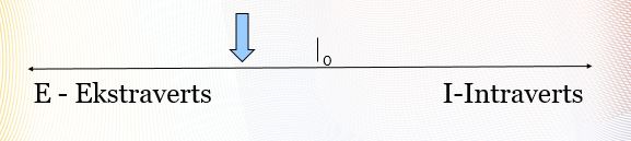 Ja katru iezīmju pāri iedomājamies atspoguļotu uz skalas ar pretējiem poliem, tad dominējošai jābūt tikai vienai pusei, nepārkāpjot „0” atzīmi. Neviena pozīcija nav ne labāka, ne sliktāka – tās atšķiras ar to, kura pāra pusē izvietota dominējošā funkcija. Viena puse katram cilvēkam atbilst vairāk, otai pusei ir mazāka atbilstība. Ja Tu būsi izteikti ekstraverts, tad atzīme uz skalas būs pie paša „E” burta. Ja kādam ekstravertam savukārt būs arī vairākas intravertās iezīmes, viņam atzīme uz skalas pietuvosies „0” punktam, nepārkāpjot to. Tiklīdz cilvēkam dominēs intravertās iezīmes, viņš atzīmēs sevi „0” punkta otrā pusē un būs intraverts. Lai atrastu savu atbilstību katrā nākamajā iezīmju pārī, jārīkojas līdzīgi.